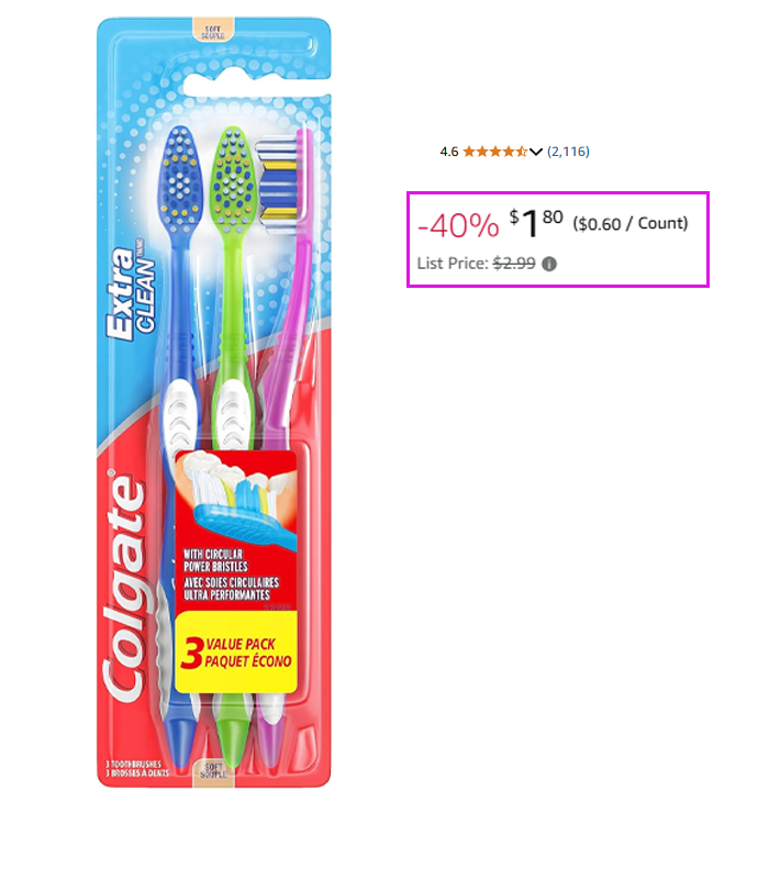 - Pay $1.80 or $2.01, as low as 60¢/toothbrush!