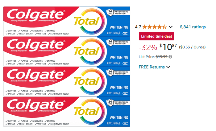 Colgate Total Whitening Toothpaste Gel, 4-Pack for $12.79 (Reg $15.99)!