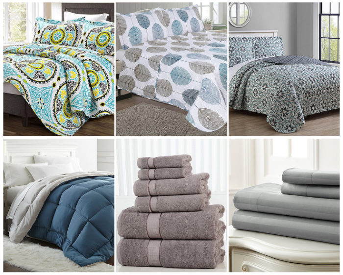 Check out these HOT prices on essential textiles for the bedroom and bathroom! There are comforter and quilt sets, sheet sets, and even 6-piece towel sets all for $19.99 and under!