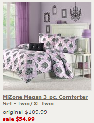 Kohl’s has marked down all of their comforter sets by 50%! Pair that with one of the coupon codes and other money saving options listed below – and you have your self one AMAZING deal! (The Free Shipping Code ends today – so don’t delay!)