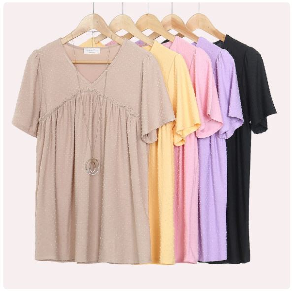 Comfy Swiss Dot V-Neck Short Sleeve Top for $13.99 + Free Shipping (Reg $38.99)!