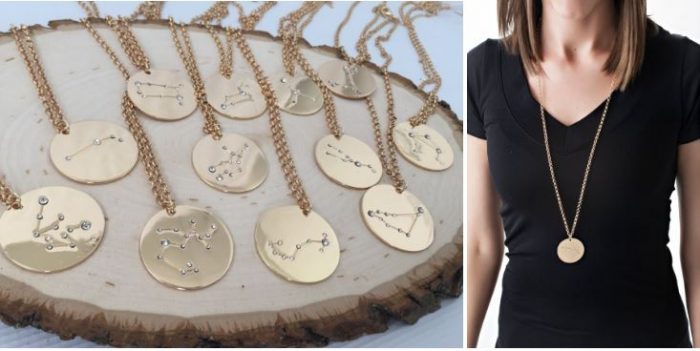 They are available in all 12 zodiac sign constellations. Each necklace is large and about the size of a fifty-cent piece with long gold chain. Grab one for yourself and your best friend! A wonderful and personal gift!