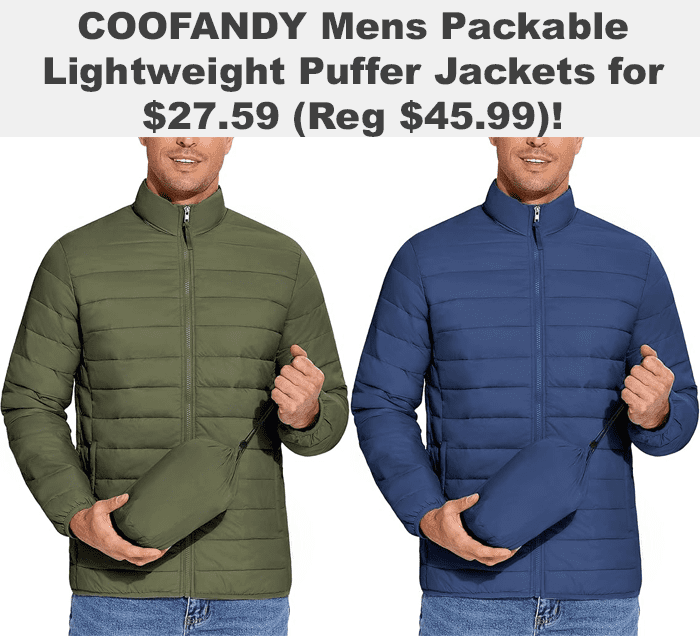COOFANDY Mens Packable Lightweight Puffer Jackets for $45.99