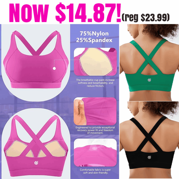 Cordaw Molded Cup Crisscross Back High Impact Sports Bras for $14.87 (Reg $23.99)!