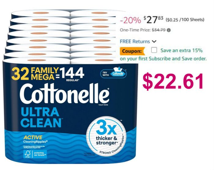 Cottonelle Ultra Clean Toilet Paper, (32 Family Mega Rolls = 176 Regular Rolls) for $29.57
