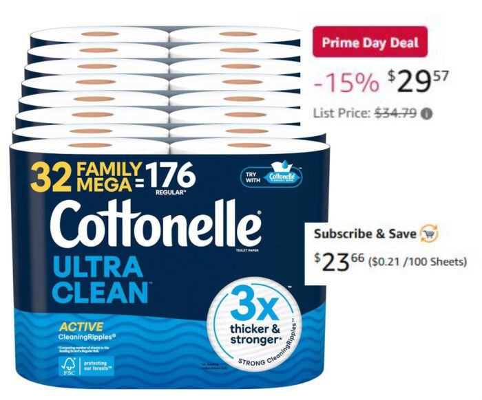 Cottonelle Ultra Clean Toilet Paper, (32 Family Mega Rolls = 176 Regular Rolls) for $29.57
