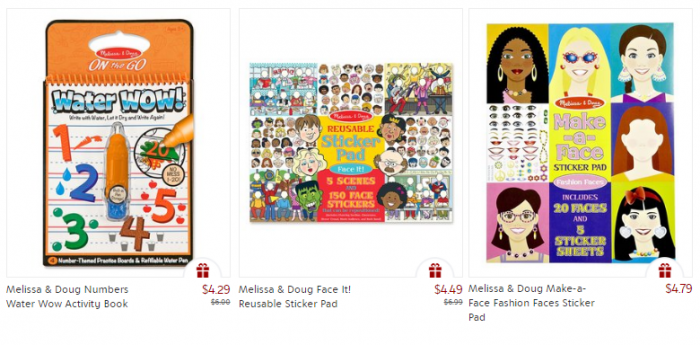 Purchase anything from the Melissa & Doug Sale with Free Shipping, items start at just $4.29. After that order is COMPLETE go back and order another item and the shipping will be free all day on all your orders.