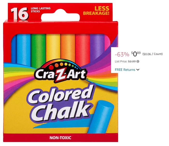 Cra-Z-Art Classic Colored Chalk, Assorted Colors, Pack Of 16 Pieces for $0.94 (Reg $2.39)!