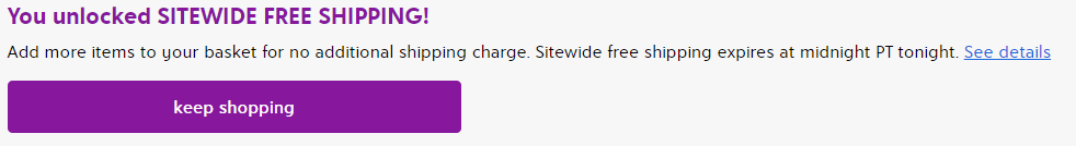 Plus, zulily has expanded its free shipping promotion! If you order any item that will not ship quickly, you can continue to add select items to be shipped with that item for no additional shipping charge until the initial item is expected to ship! Only products that are marked as “can ship quickly” qualify to be added to the box with free shipping. Items that will ship free for you will be clearly marked.