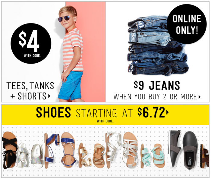 Jeans are on sale 2 for $9, and so only $14.40 for 2 after you use code BEACHDAY! That’s just $7.20 each! You can also get graphic tees for $4, Shoes from $6.72, and more!