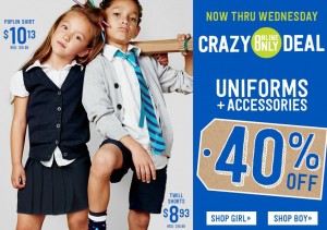 Great news! Crazy 8 has marked their school uniforms and accessories down 40% through tomorrow (July 30)! If your child goes to a school where uniforms are required, you’ll definitely want to stock up with this sale.