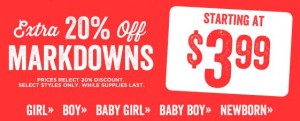You’ll want to take advantage of this code by also checking out the clearance section. Buy up a size for next summer’s clothing!