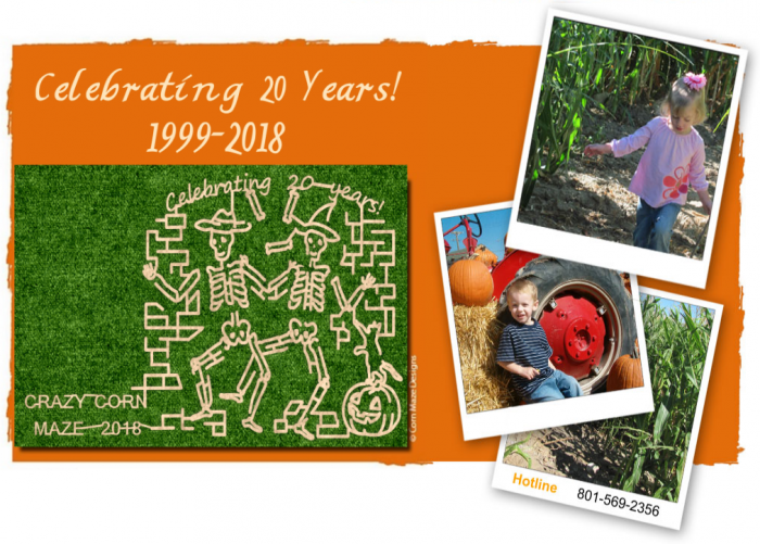 Crazy Corn Maze has been providing fall festivities since 1999! Come enjoy a family-friendly corn maze, pumpkin patch or haunted trail this season! This is located at 8800 South 4000 West in West Jordan Utah.