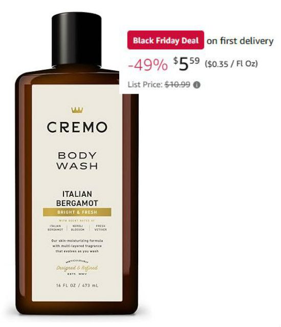 CREMO Rich-Lathering Italian Bergamot Body Wash $6.58 (reg $10.99)