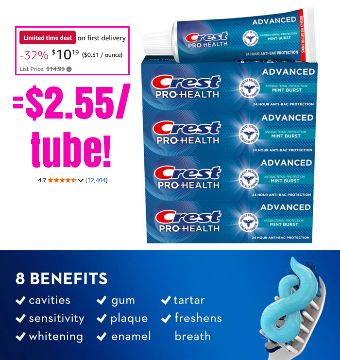 Crest Pro-Health Advanced Antibacterial Protection Toothpaste – Pack of 4, 5 Oz Tubes for $11.99 (Reg $14.99)!