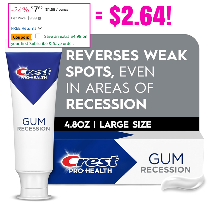 Crest Pro-Health Gum Recession Toothpaste 4.6 oz for $8.97Reg $9.99)