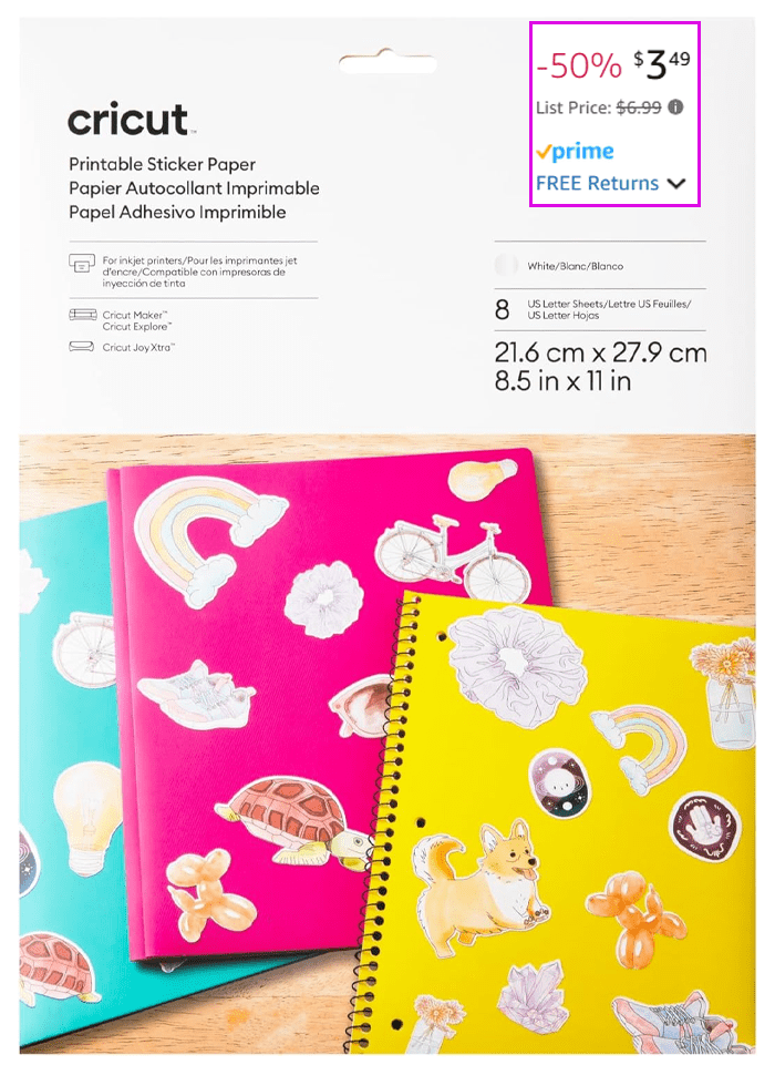 Cricut Printable Sticker Paper, 8Ct for $3.49 (Reg $6.99)!
