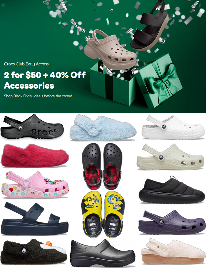 • You must be a member of Crocs Club to get this Early Access deal. It’s free to join