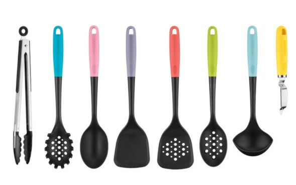 - Included: 1 Tongs, 1 Spoon(s), 1 Slotted Spoon(s), 1 Ladel(s), 1 Pasta Server(s), 1 Peeler(s), 2 Turner(s)