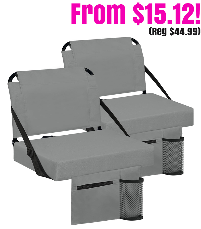 Cushioned Stadium Seats with Cup Holder & Pocket for $33.99 – $44.99 for 1 or $54.99 – $69.99 for 2