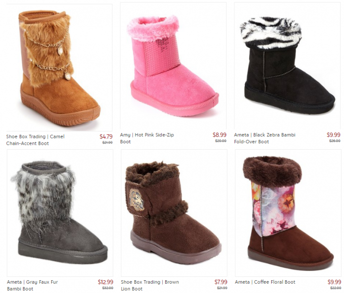Oh my word! Check out this AWESOME sale on kids boots! Prices start at just $4.79, and sizes range from infant to to big kid 4.