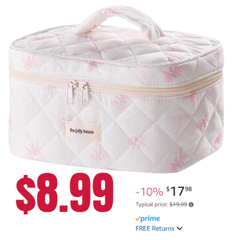 Cute Pink Bow Quilted Makeup Bag for $17.98 (Reg. $19.99)