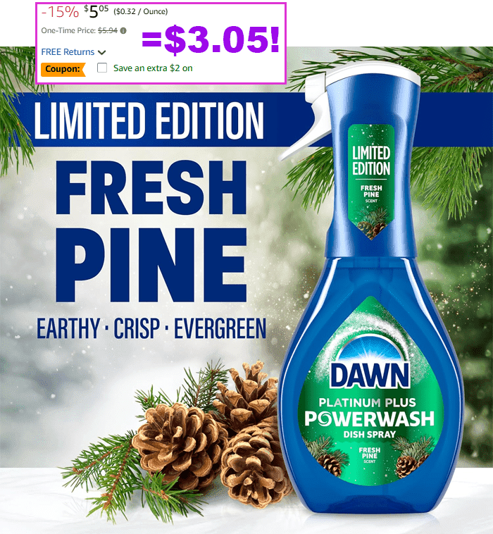 Dawn Platinum Powerwash Dish Spray, Fresh Pine, 16 Fl Oz for $5.94