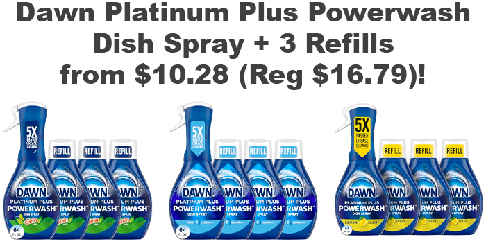Dawn Platinum Powerwash Dish Spray, Dish Soap, Lemon Scent Refill, 16 oz, 3 Pack for $17.76 (Reg $19.76)