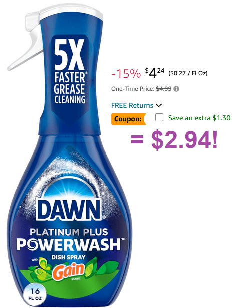 Dawn Powerwash Gain Original Dish Spray, Dish Soap Starter Kit, 16 Fl Oz for $4.99