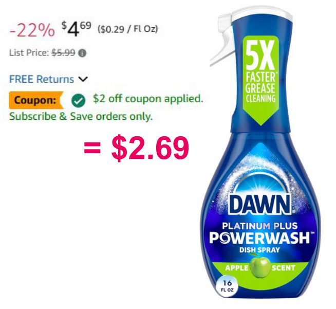 Dawn Platinum Powerwash Dish Spray for $4.94