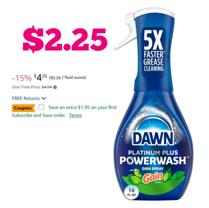 Dawn Powerwash Gain Original Dish Spray $2.25 or $2.74 (reg $4.94)