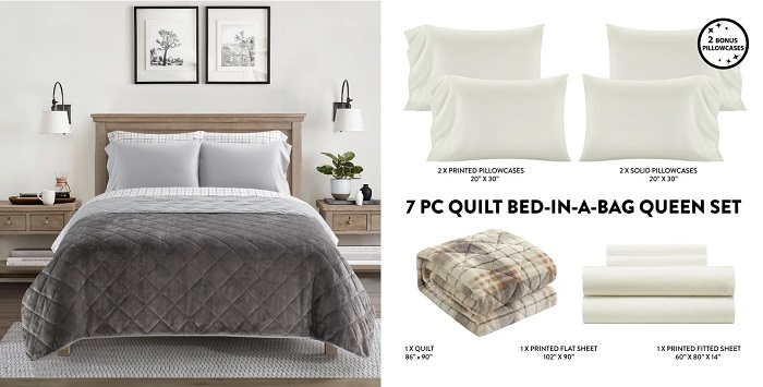 Dearfoams Velvet Plush 7 Piece Quilt Bedding Set with Polyester Sheets for $29 (Reg $44)!