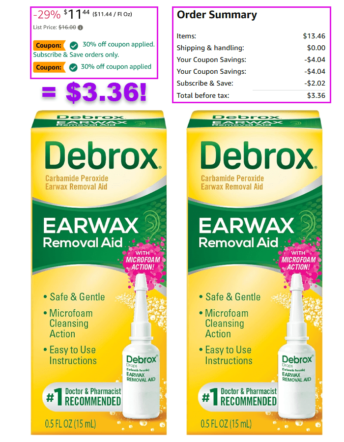 Debrox Ear Wax Removal Drops, 2 Pack for $13.46 (Reg $16)