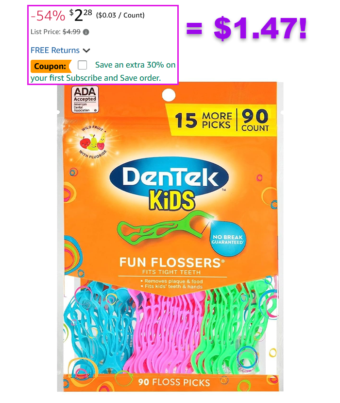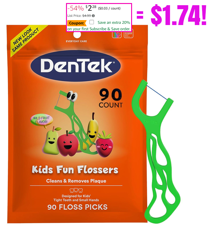 DenTek Kids Fun Flossers, Wild Fruit, 90 Count for $2.68 (Reg $4.99)