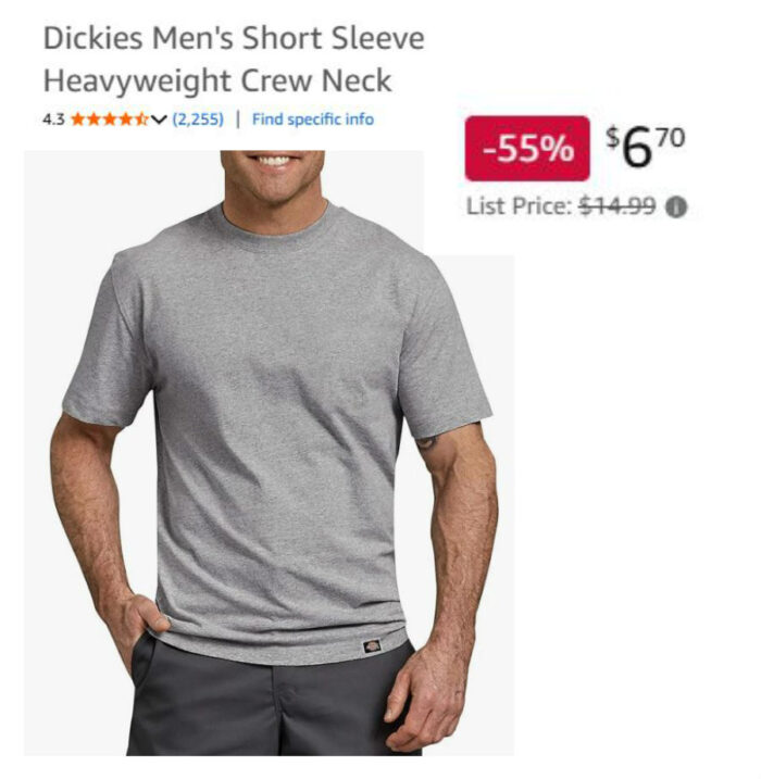 Dickies Men’s Short Sleeve Heavyweight Crew Neck $6.70 (reg $14.99)