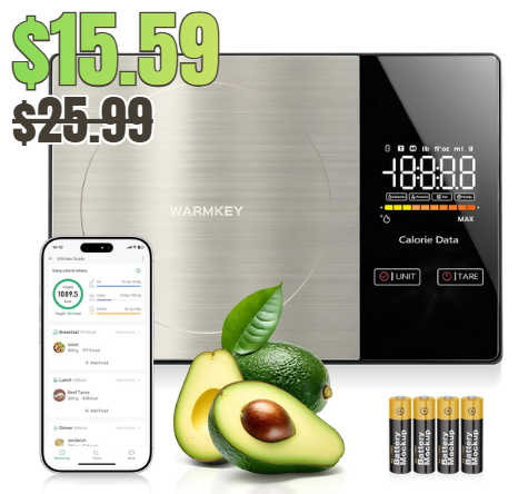 Digital Kitchen Scale with Nutritional Calculator App from $15.59 (Reg. $26)