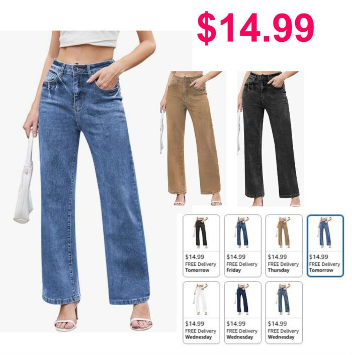 Dimur Women’s High Waisted Straight Jeans $14.99