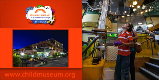 Discovery Gateway is the premier children’s museum in Utah providing engaging activities that inspire learning in children and fun for the whole family. Exhibits include everything from a 30-foot beehive where children and adults work together to keep things “buzzing,” a pint-sized city where kids rule, a media zone where youth can anchor the news, report the weather, and experience all the behind-the-scenes action, and much more!