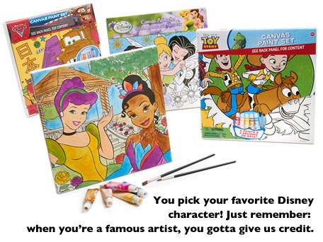 Have you been checking out kids.woot? Today they have a super fun deal. They have these Disney Canvas Paint Sets for only $2.99 Each! Shipping is a flat $5.00 but you can purchase up to 3 and pay the same shipping. So…you can pick out 3 and pay only $13.97 shipped!