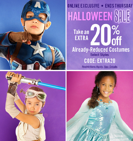Today only, use code EXTRA20 to get another 20% off already-reduced Costumes at the Disney Store!