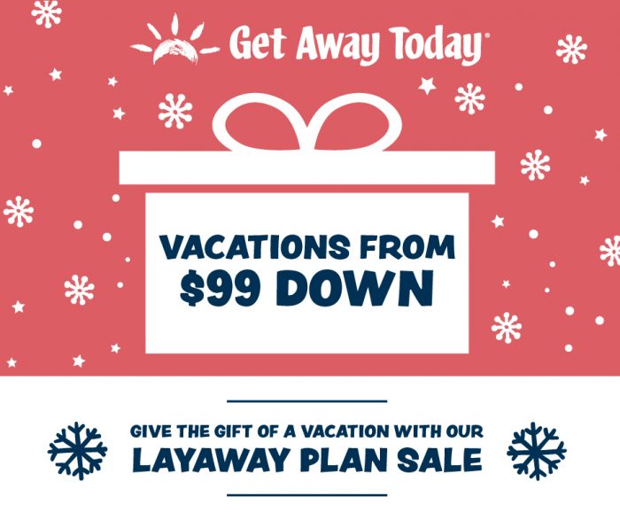 - For a limited time, you can reserve your trip for just $99 down using Get Away Today’s interest-free Layaway Plan!