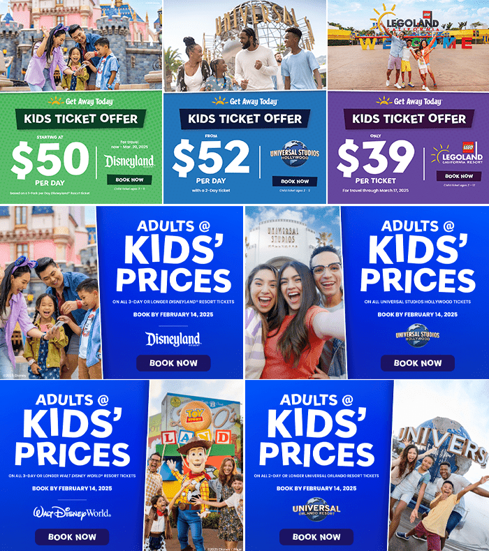 From now through February 17, 2025, Get Away Today has Adults at Kids’ Prices for all of 2025 travel on the following tickets: