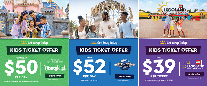 Disneyland: Kids tickets are available for as low as $50/day for travel through March 20, 2025! Tickets can be found here.