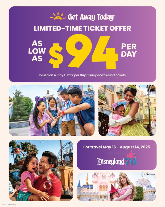 As a reminder, these ticket specials can be combined with hotel offers to help families save the most, these tickets have refundable options, and with Get Away Today, you’re never penalized for booking early! Take advantage of special hotel offers like Extra Night Free, Free Breakfast, Reduced Parking and more at select Anaheim area hotels.