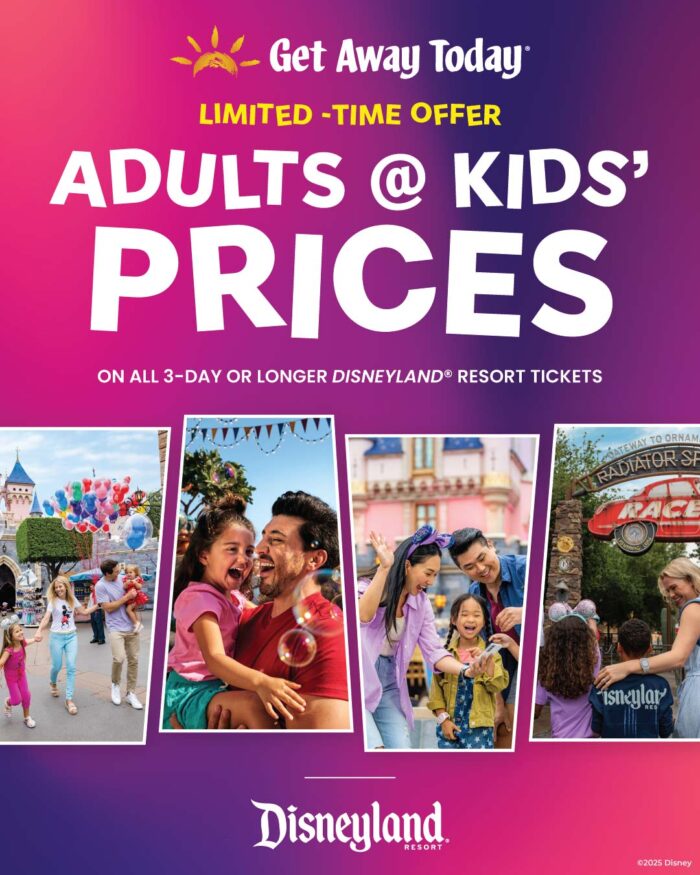 - Adults at Kids’ Prices has been so popular that it has been extended for another two weeks – *Ends TODAY April 7, 2025! This offer is valid on BOTH coasts on our most popular tickets, 3-Day and longer Disneyland AND Walt Disney World Resort tickets. This is perfect for those guests visiting Disneyland for spring break and after the summer ticket sale is over.