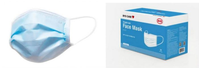 BYD Care 3-Ply Pleated Disposable Face Mask (50pc) $14.99! Only 30¢ each!