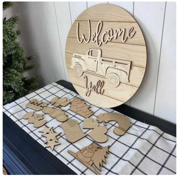What a cute DIY project! The different seasonal pieces can be inserted into the truck bed. It comes unpainted so you can choose whatever colors you’d like.