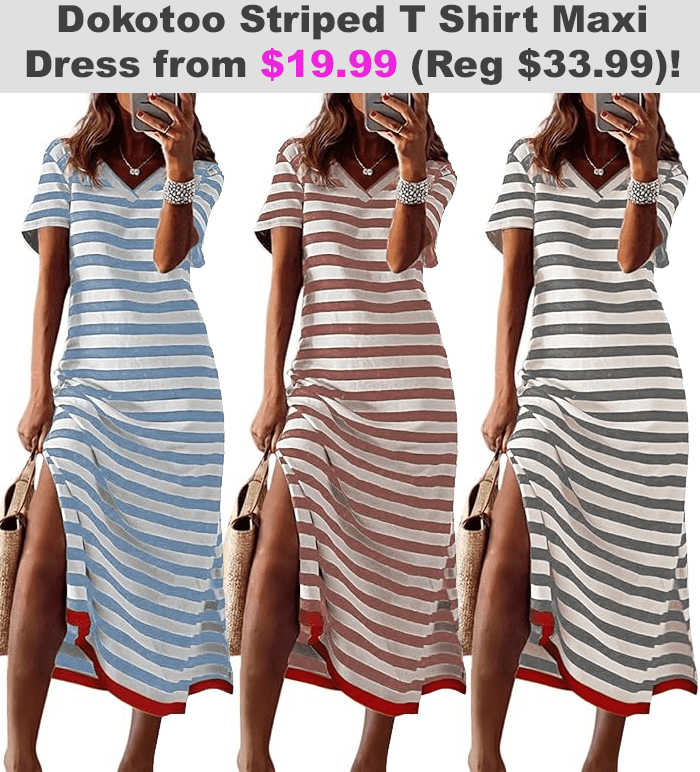 Dokotoo Striped T Shirt Maxi Dress from $19.99 (Reg $33.99)!