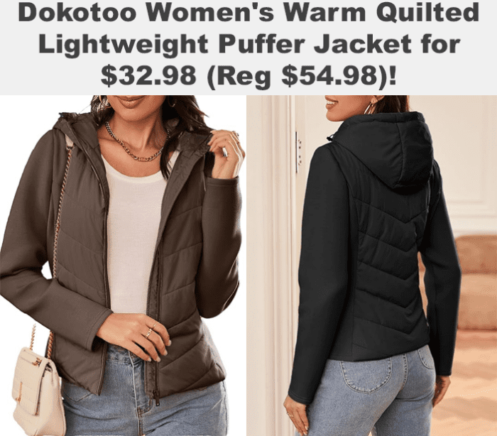 Dokotoo Women’s Warm Quilted Lightweight Puffer Jacket for $54.98