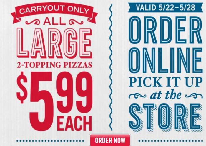 Domino’s Pizza is offering a Large 2-Topping Pizza for only $5.99! (This is for carryout only).